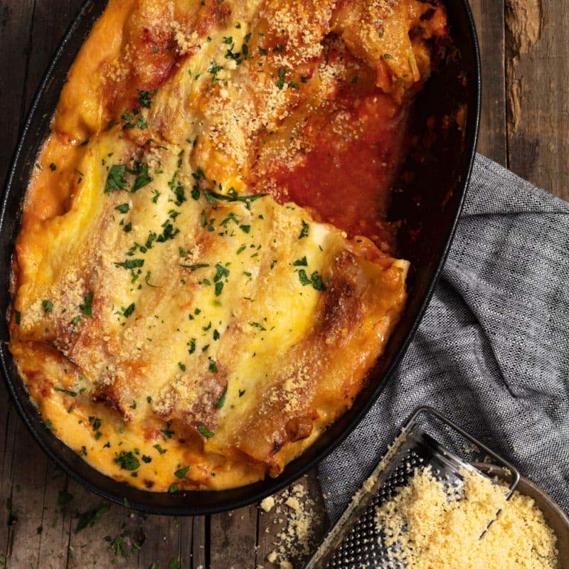 Butternut and Feta Cannelloni in Tomato Sauce