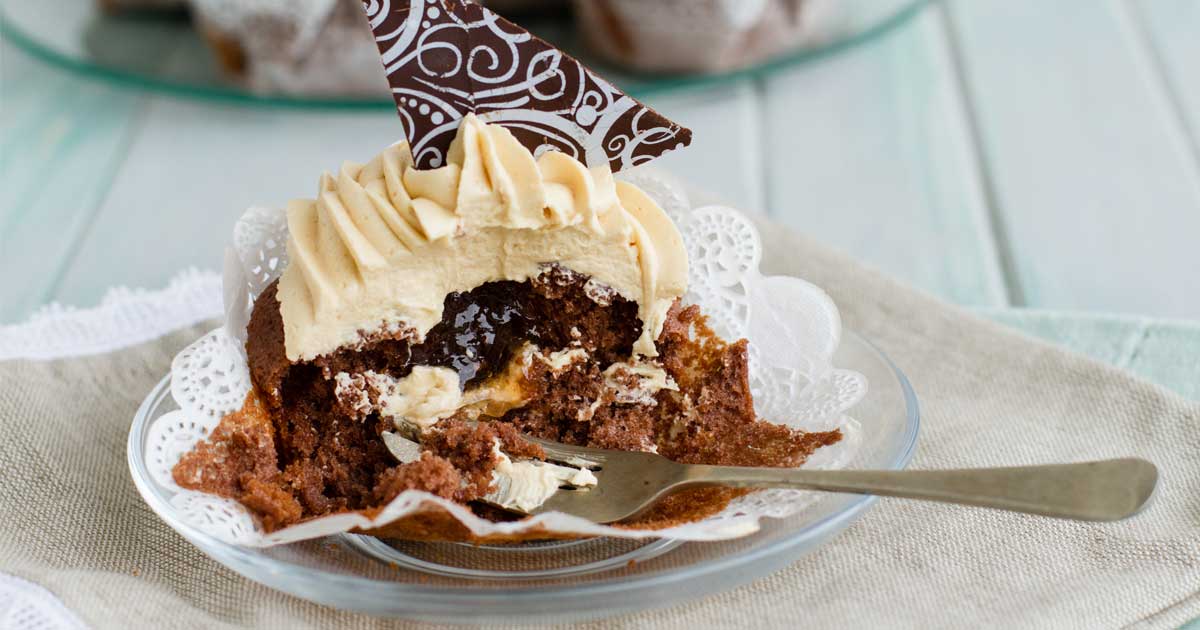 Peanut Butter Cupcakes with Strawberry Centre